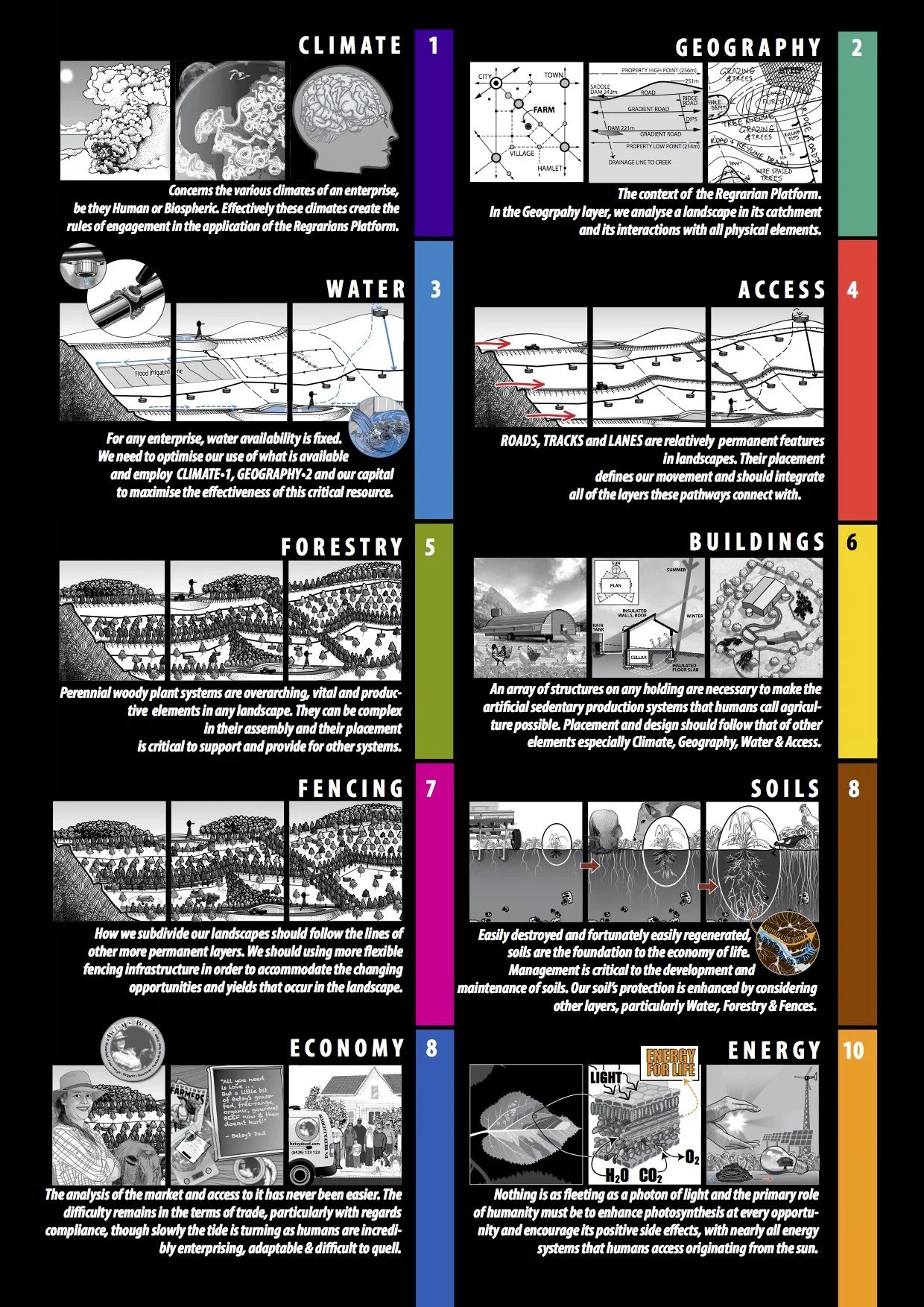 Darren a développé, sur la base de l'échelle de permanence du Keyline® imaginée par P.A. Yeomans, une méthode spécifique unique et mixant les méthodes de conception d'espaces agricoles les plus efficaces actuellement (Keyline® Design, gestion holistique des fermes®, carbon farming, conception en permaculture...)